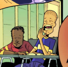 Back to the classroom, same angle and framing as Panel three. There’s anger in her eyes, the look of a pissed off teacher.
