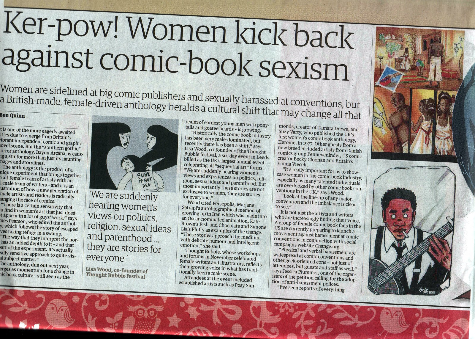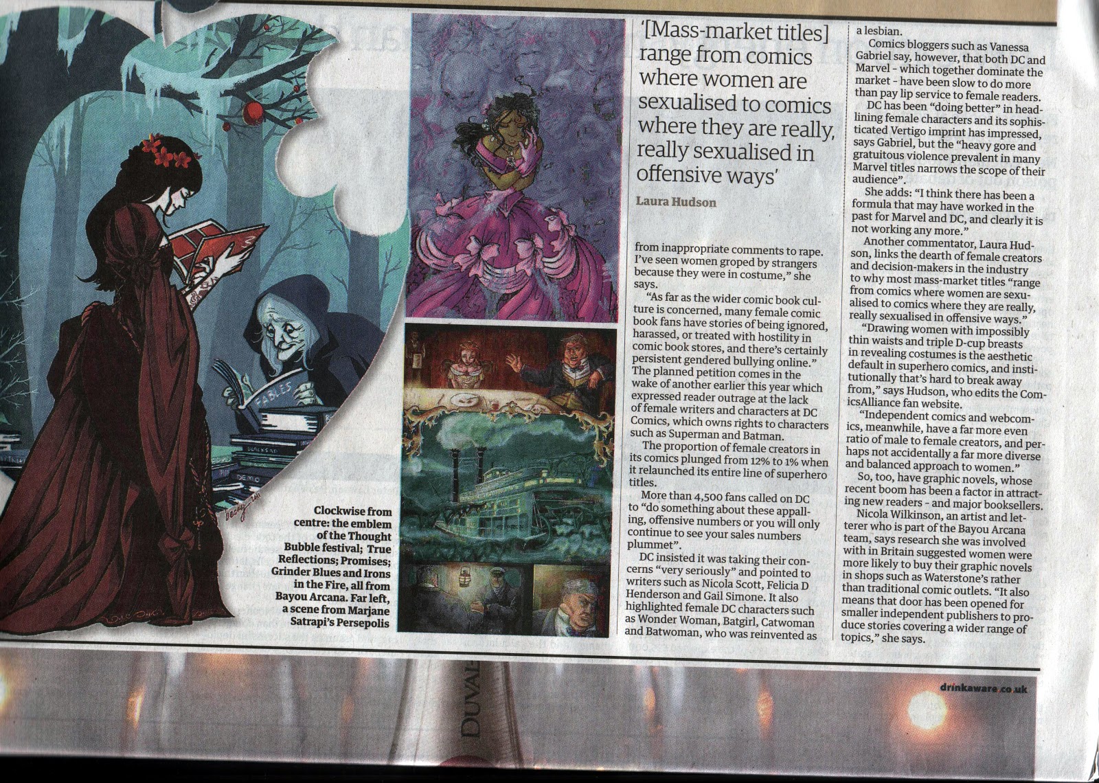 You can read the article here: http://www.guardian.co.uk/books/2011/dec/28/women-comic-book-sexism. And the good man Lee Grice (from Small Press Big Mouth) scanned in the pages from when the article was printed a few weeks back: